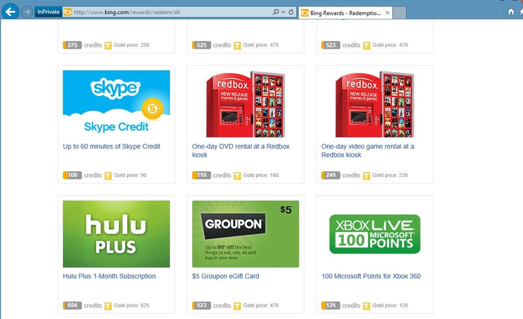 Microsoft’s Bing search engine has a rewards program, where you can earn points for doing searches. These reward points can be redeemed for different items, one being 60 minutes of Skype credit. Not bad for something we do on a daily basis.